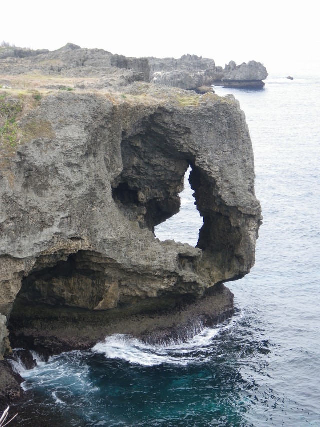 万座毛は沖縄本島西海岸、恩納村にある絶景。断崖絶壁の岩が何かの形に見える。