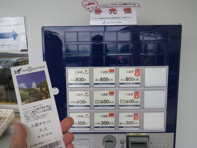 オーシャンタワーの入り口には入場券の自動販売機やパンフレットが置いてあります。