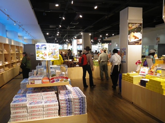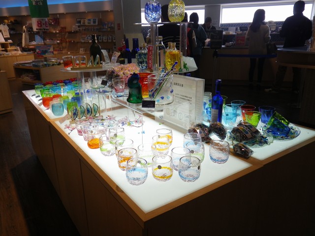 食品からお酒、このような食器類までたくさんのおみやげが並んでいます。