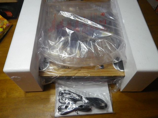 ちなみにACアダプターは梱包材の発泡スチロール側面にはりついているので、忘れず取り出しておこう。