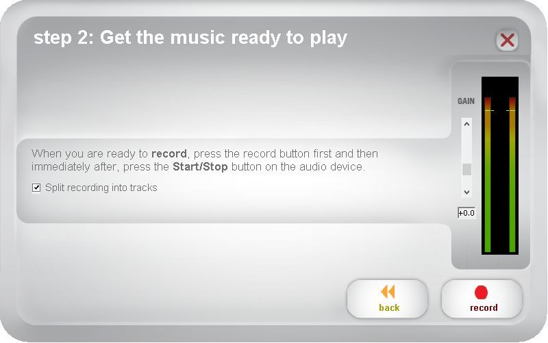 「Split recording into tracks」にチェックを入れるところで、無音部分により曲のファイル分けを自動でしてくれる。