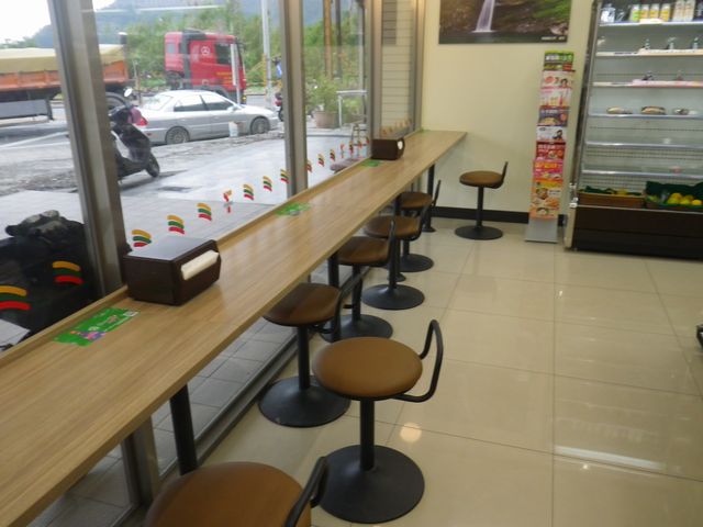 このセブン、めっちゃ広くて奥にはファミレスのようなテーブルやイスがあった。
