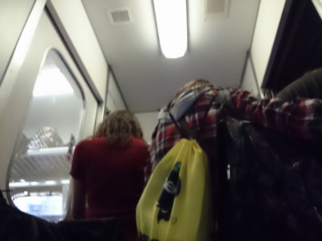相当な席無しの人がいて、通路を含めかなりの人が立っている。マジか。