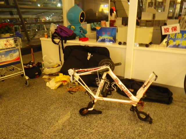 まぁ、のんびりとビールでも飲みながら飛行機用の輪行をセットアップしよう。