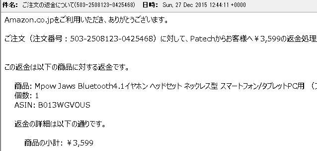 いい商品だったので、マジで残念だったが、この返品・返金処理の流れはマジで感動をした。