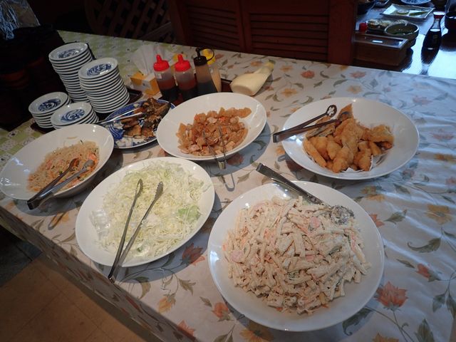 今日の盛り放題のお皿。揚げ物有り、サラダ有りと豊富だ。