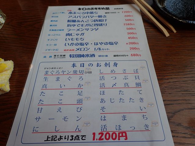 こちらは本日のおすすめ。まずは本日の刺身3点。あといももち。