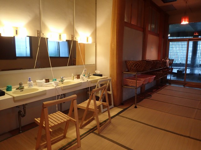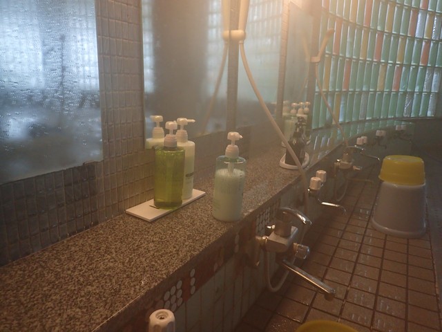 露天風呂です。この日は雨も降っていてすげ傘大活躍。