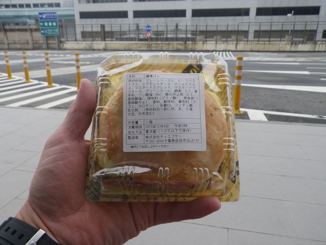 とりあえず、補給食などを手に入れるコンビニまでは走りたいので、手元にあったジェットスターでもらったベーグルサンドをいただいた。
