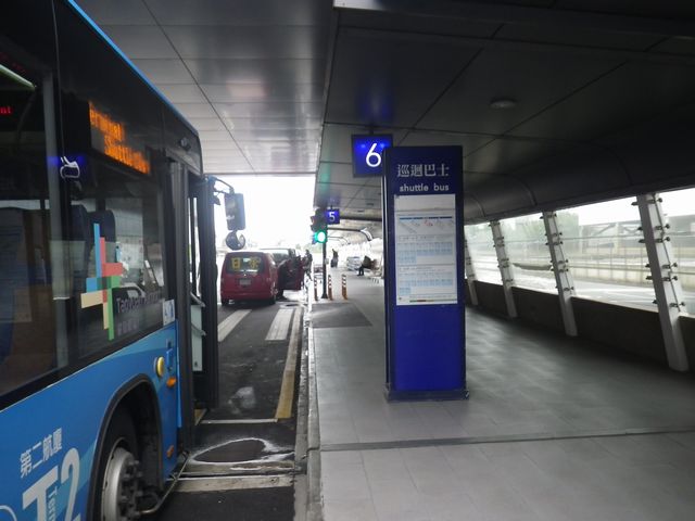 ターミナル1でのシャトルバス乗り場は6番バス停より。