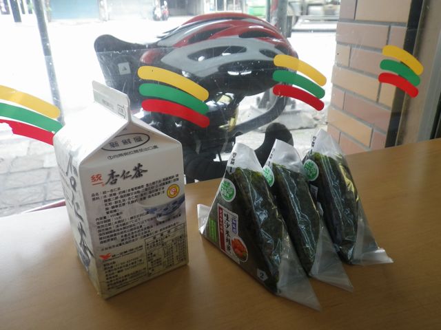 とりあえず、補給食と今食べるおにぎり3個。それに杏仁茶。