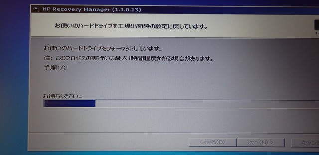 工場出荷時の設定に戻しています。1時間程度かかるとのこと。