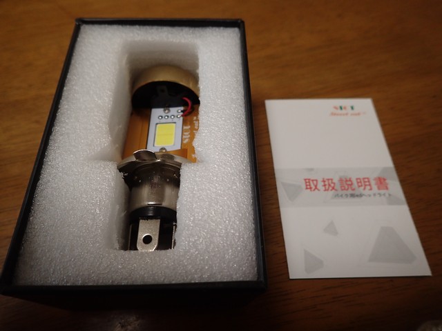 中華製とは思うが、キレイなパッケージに、とりあえず日本語の説明書。梱包もしっかりとしている。問題なし。ソケットはH4なので、そのままポン付け。