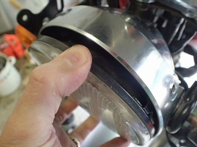 CB223Sのヘッドライト取り外しは簡単だ。ヘッドライトボディの上部左右にあるプラスネジをプラスドライバーで取り外す。これだけでレンズ部が取り外すことができる。