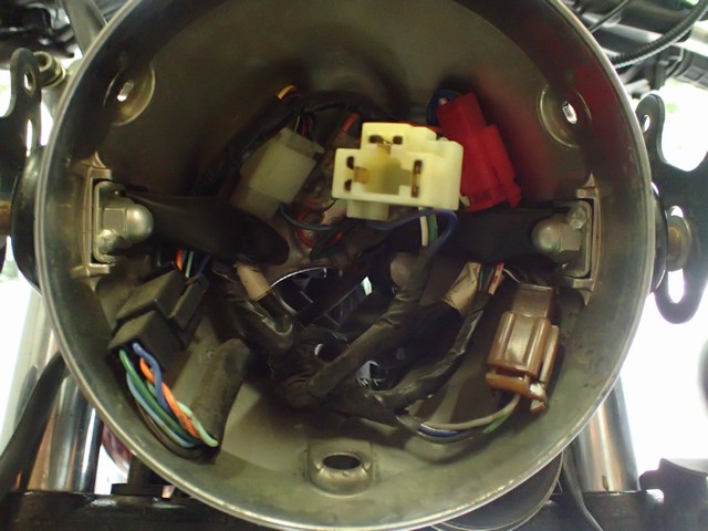 CB223Sのヘッドライト内部となっている。簡単な配線なら、ここから引っ張ることができるだろう。