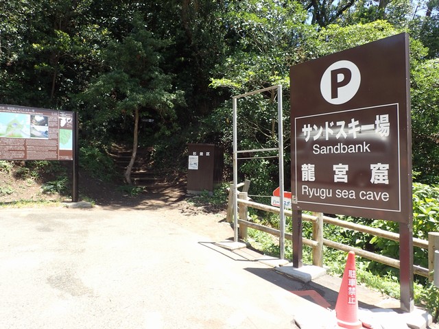龍宮窟入り口を中心に両側2箇所に駐車場がある。