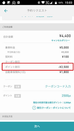 予約リクエストの際、このようにポイント割引が適用をされる。割引については(2018年6月30日までだが)、以下をチェックしてほしい。