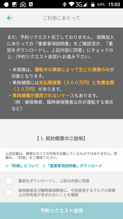 エニカで予約をすると東京海上日動の1日自動車保険に(強制)加入になる。