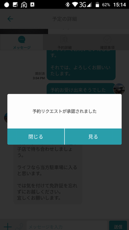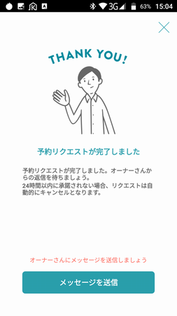 そしたら、すぐにオーナーさんから予約リクエストの承認完了。