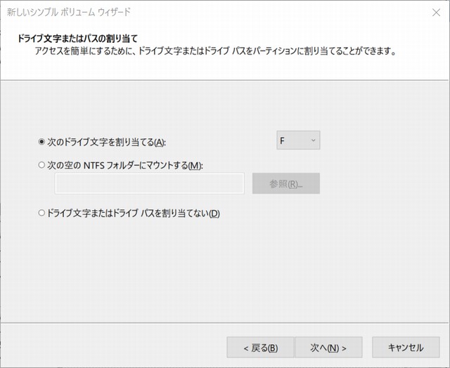 適当に空いているボリュームを割り当てる。デフォルトで割り当てられているのでOK。