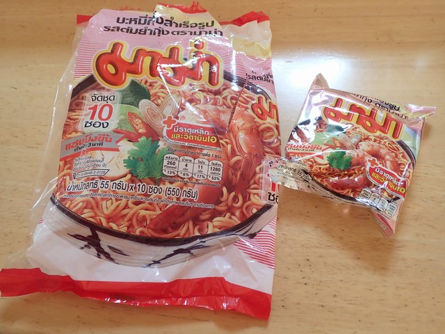 さて、それではタイのトムヤムクンヌードル(10個入り)を食してみよう。