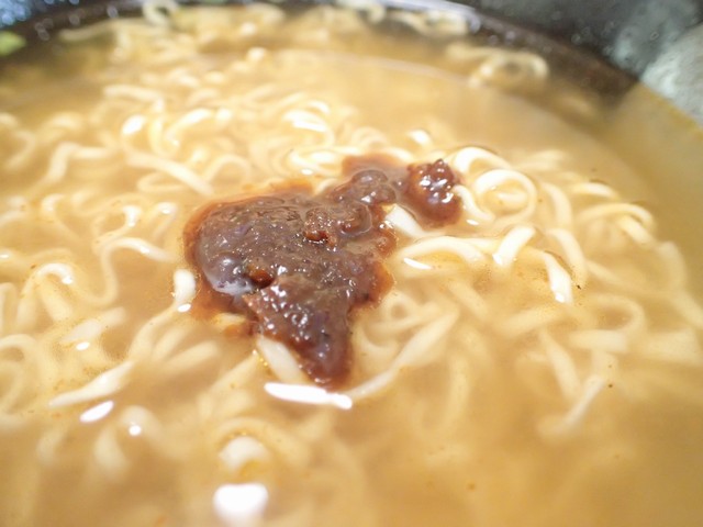 さらにここで辛味スープ、ペーストを投入してみる。見るからに辛そうだ。