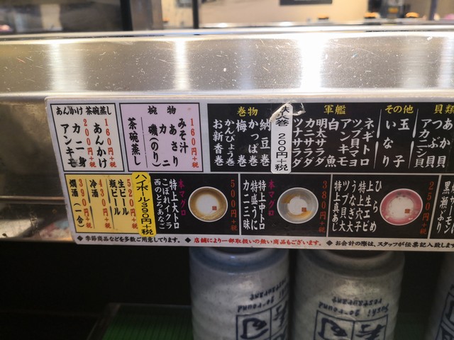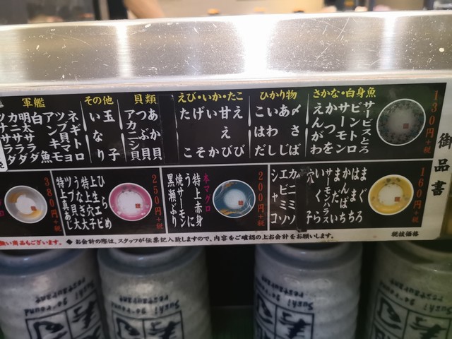 まぐろ、はまち、かんぱちなどは160円となっている。