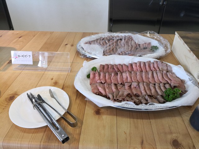 オレのお目当てローストビーフ。ご飯よそってローストビーフ丼をぜひ試してもらいたい。