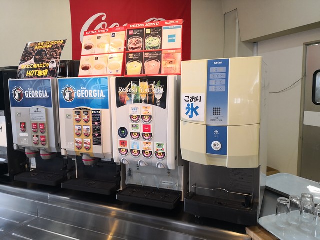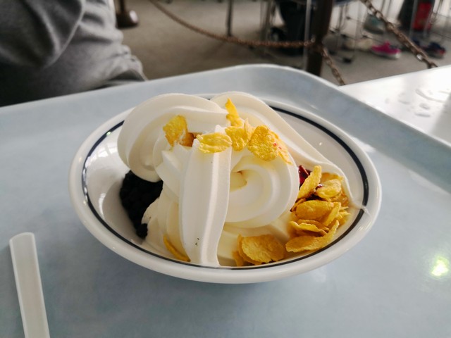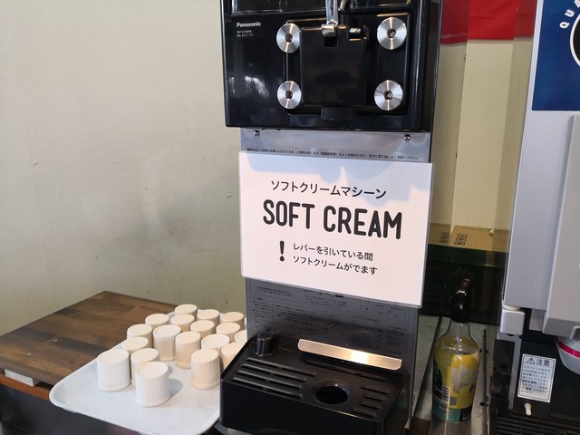 ソフトクリームマシーンもある。トッピングもチョコやナッツ、シリアルなど各種。