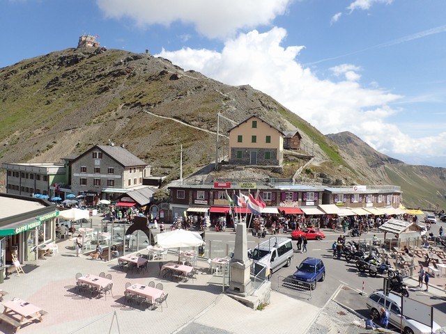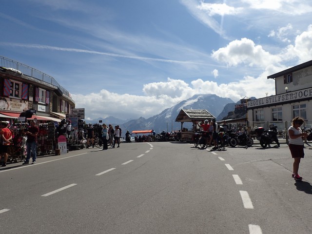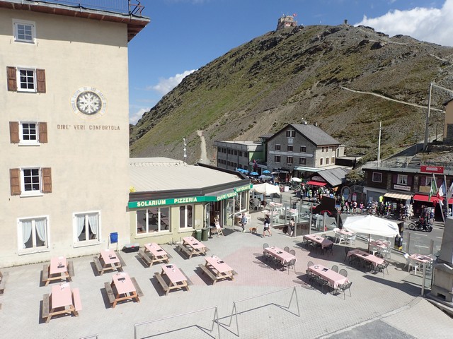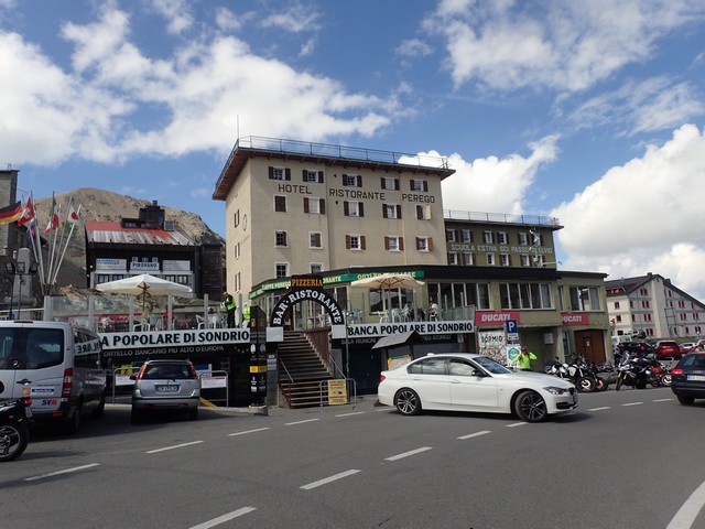 ステルヴィオ峠にはあんがいたくさんのホテル、カフェ、レストラン、お土産物、ショップなどが立ち並ぶ。