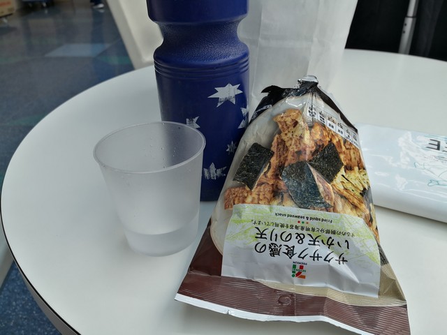 ゲート前の椅子を確保して、ちょっとおつまみ。
