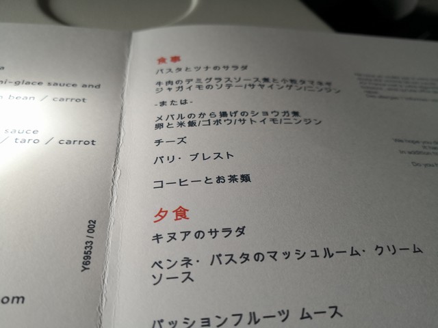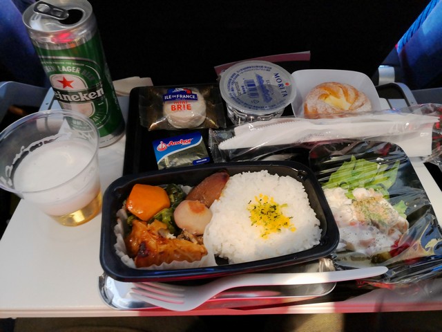 エールフランスAF279パリ行は羽田を飛び立ち、ちょっとしてからディナーがサービスされた。