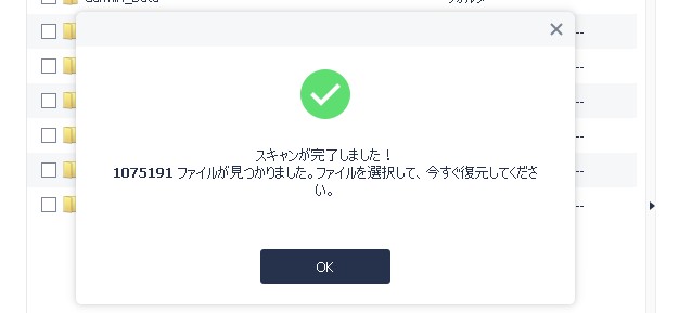 スキャンが完了。「OK」をクリックすると復元をする。