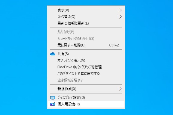 デスクトップを右クリック→「個人用設定」をクリック。