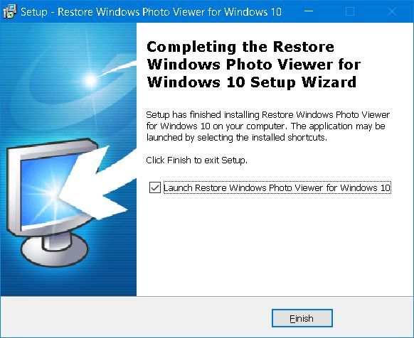 「Finish」をクリックしてインストールが完了すると、Restore Windows Photo Viewerが自動的に起動します。