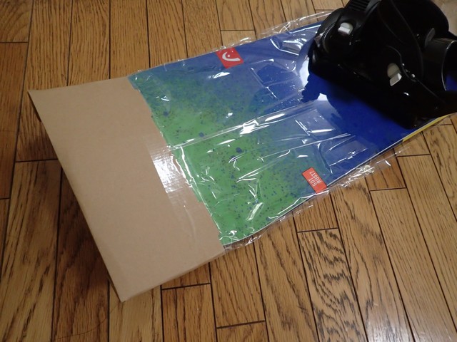 スノボードの先端と後端はダンボールによってカバーされていた。
