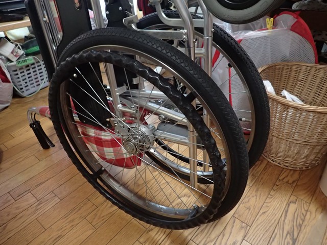 その場合、自身の車椅子のタイヤサイズを把握しておくといいぞ。ちなみにタイヤ外すと、だいたいリムテープもダメの場合が多いから、揃えておこう。ウチのもダメだったよ。