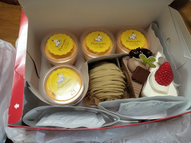 1箱目にはケーキ3つとプリン4つが入っていました。