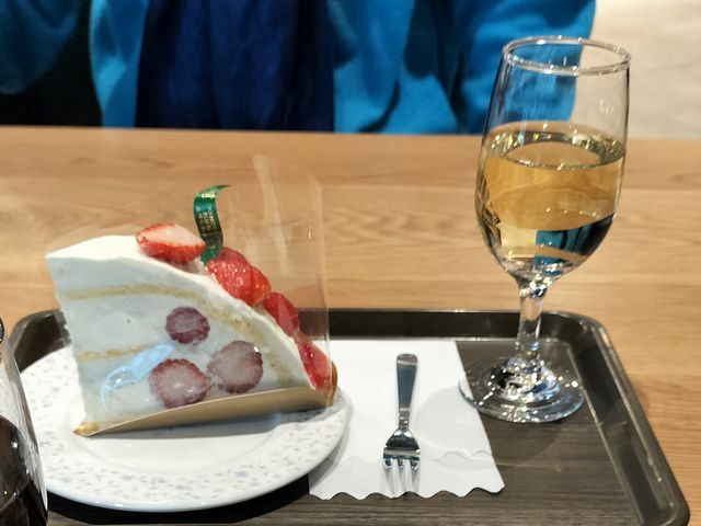 嫁さんはいちごショートケーキと白ワイン。おいしかったそーです。