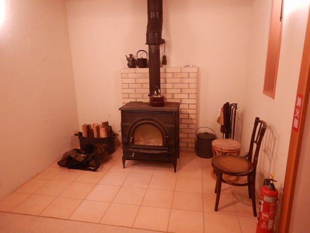 エントランスに暖炉があり、冬になると暖かくむかえてくれるようです。ここで酒呑むのもよいな・・