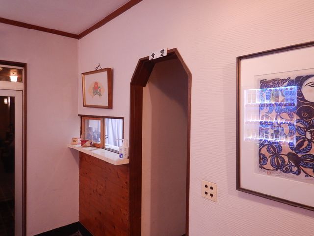 エントランスを入るとすぐにフロント。その横には食堂へのドアがありました。
