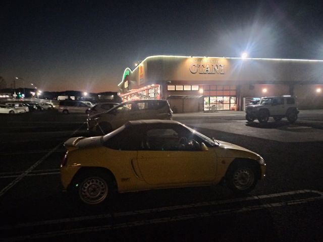 部屋でいろいろゴソゴソやってから9時すぎチェックアウト。外の駐車場のお仕事の車はいなくなっていて、ビートがぽつんと1台だけ止まっている。