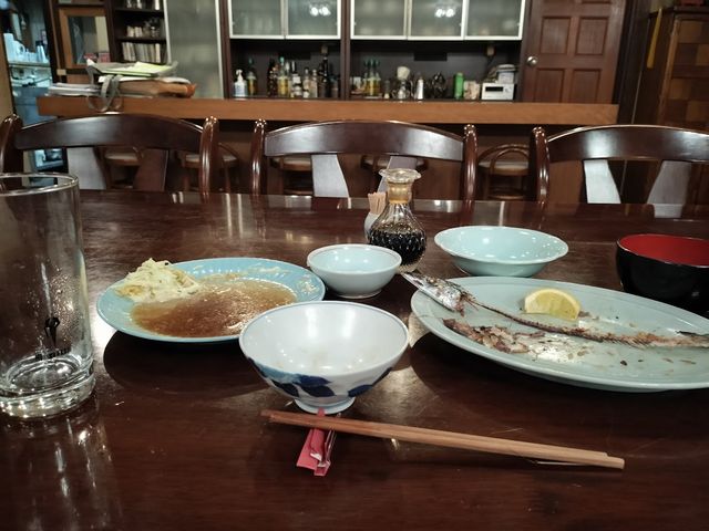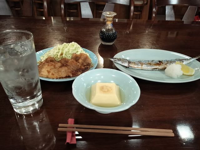 夕飯スタート。卵豆腐、生姜焼き、サンマの塩焼きと非常によい感じの夕飯である。焼酎の水割りをいただく。